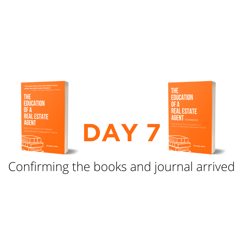Between 5-7 days after signing up, you will receive my books, The Education of a Real Estate Agent, and the Workbook that complements it. Both books must be completed before we meet on day 14. Plus, you will also receive your License to Legend Journal, which is to be used when we meet, so you have something to easily refer to afterward.